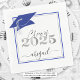 Personalised CLASS OF 2025 graduation party napkins with your graduate's name in a chic handwritten script typography with shimmering faux metallic silver foil 2025 and royal blue graduation cap or mortarboard design. ASSISTANCE: For help with design modification or personalisation, colour change, year change, transferring the design to another product or you would like coordinating items, contact the designer BEFORE ORDERING via the Zazzle Chat MESSAGE tab below or email makeitaboutyoustore@gmail.com.