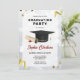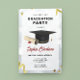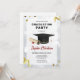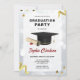 A simple and beautiful invitation with graduation cap, diploma and gold confetti on a sparkling background