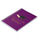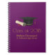A spiral notebook with a chic design illustrated with a graduation cap and diploma. Text says: Class of 2018 (you can customize the year) and the graduate's name and school. Set on a pretty purple background with gold colored lettering. Simple, modern and elegant.