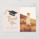 Personalise this stylish and modern graduation thank you postcard with your name and photo. Featuring a gradation cap with gold tassel and modern brush script that says "Thank you" in gold. Add your return address and custom message on the back.