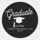 Modern black and white graduate round sticker for the high school or college graduate. The word "Graduate" is written in an elegant handwritten script font. A white (customisable colour) graduation cap sits in the middle. Personalised with the name of the graduate, their school name, and graduation year. The colours on these stickers can be customised to match your school colours. Perfect to use as envelope seal stickers for your announcements or graduation party invitations or as favour bag stickers for your party guests. Contact me for assistance with your customisations or to request additional matching or coordinating Zazzle products for your event.