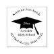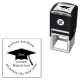 A self inking address stamp featuring an illustration of a graduation cap at centre.