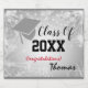 Graduation Cap, Class Year 20XX party Silver Beer Bottle Label