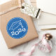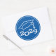 These blue 3" round stickers feature a graduation mortar board cap and your class year in chic white lettering. Also available in a smaller size. MATCHING items in our collection.