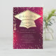 Graduation Cap,Diamonds Frame Red Graduation Invitation