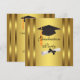 Gold background with black and gold graduation cap and diploma graduation party invitation. Customise with your party details, font style and font colour.