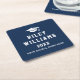 Graduation cap name college sports font dark blue square paper coaster