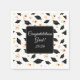 This paper napkin is shown in a white cocktail size with a graduation cap print.