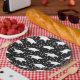 "Planning a graduation party? Elevate the celebration with these elegant paper plates featuring white graduation cap and confetti on a sleek black background. Perfect for adding flair to your party decor and tableware!"