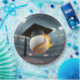 A baseball wearing a graduation cap is surrounded by flames, symbolising a blend of education and sports intensity.