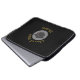 A personalised class of 20xx laptop sleeve designed with a black graduation cap surrounded by a semi-transparent white circle. Modern and stylish.