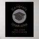 A poster which says Class of 20xx , school and Congrats graduates, written in colour gold. Designed with a black graduation cap surrounded by a semi-transparent white circle. Black background with gold lettering is simple yet stylish.