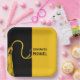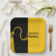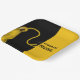 Creative graduation party congrats design featuring a classic black and gold graduation cap on a yellow background. Edit text to add senior class grad's name.