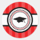Graduation Caps Stripes Party Favour Sticker (Red / White / Black)...This classic Graduation sticker is the perfect addition to the graduation party invitations inviting friends and family to a graduation party. It's also a great party favour sticker. Use it on goodie favour bags. Put them on toothpicks and put them in graduation cupcakes. Whether you're celebrating a Kindergarten (Kindergarden) Graduation, High School Graduation, Law School (JD) Graduation, Med (Medical / MD) School Graduation, Business School Graduation (MBA), Nursing School (RN) Graduation, Dental School (DDS) Graduation, College Graduation, Pharmacy School Graduation, Veterinary (Veterinarian) School Graduation, or Grad School Graduation (PhD / Masters Degree), this sticker is perfect to mark the occasion. The little graduation cap is too cute. See WindyCityStationery.com for our complete line of "Graduation Cap Stripes" postage stamps and matching "Stripes" invitations and announcements as well as our lines of invitations, save the dates, postage stamps, note cards, and more for every occasion.