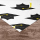 Features a black and gold graduation caps pattern on a white background.