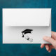 This image showcases a graduation-themed envelope design. The envelope features a pattern of black graduation caps and rolled diplomas on the inside flap, creating a festive and academic motif. The front of the envelope displays a larger, singular illustration of a graduation cap and a rolled diploma, symbolising achievement and celebration. This design is perfect for sending graduation announcements, invitations, or congratulatory messages, making it both interesting and relevant for academic milestones.