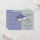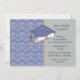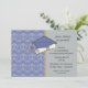 A formal blue damask pattern paired with a steel grey panel and a gold band, topped with a graduation hat and a diploma. Ideal for any sophisticated graduate's celebration.