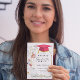 These colourful wildflowers have a pink grad hat frame, and the graduation ceremony invitation features a pink and gold grad hat and black custom typography.