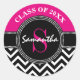 Graduation Chevron Monogram Hot Pink and Black Classic Round Sticker