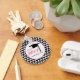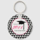 A keychain featuring a background design of black houndstooth. Text "Class of 2011" with black graduation cap illustration inside pink frame. Personalise with your name.