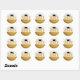 Graduation party favour stickers with grad cap on faux gold foil and white type on a white background. For men or women.