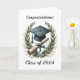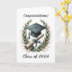 Celebrate the achievements of the Class of 2024 with this elegant graduation congratulations card. Featuring a classic design with a cap and diploma surrounded by a traditional laurel wreath, the card is accented by soft and subtle flowers. The front proudly declares, "Congratulations! Class of 2024." Inside, a heartfelt message honours the graduate's hard work and dedication, wishing them a future filled with success and happiness. Perfect for any graduate, this card is a timeless way to commemorate their milestone and share in their joy