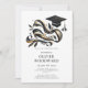 A modern unique graduation party invitation featuring a grads cap and ribbon illustration. Customise with your graduating class year. Customise for a college grad or high school grad.