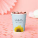 Class of 2024 Graduation party paper cups, with a yellow sunflower bloom design and black script lettering. Set on a blue background, you can add your own text. This cute item makes a fun addition to your favourite graduate's celebration.