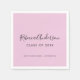 A stylish graduation napkin with a minimal design on a light pink background. The name appears in the popular handwritten style text and plain text for the graduating year and school.