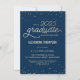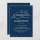 This elegant and festive 4.5" x 6.25" Graduation Party petite invitation features gold (simulated foil) confetti with the words "Class of 2025 Graduate" showing in a gold script font. The background is navy blue, but can be changed to any colour of your choice. The celebration details can be easily customised for your special event (such as name of high school). The back of the sheet features a gold dotted pattern, also with a navy blue background that you can customise to your liking. A beautiful and simple way to invite guests to celebrate a graduation.