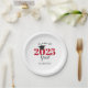 This personalised party paper plate is perfect for any graduation celebration. The red and black text reads: Class of 2025 Grad. A black mortarboard sits on top of the zero in the year.