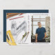 Graduation Class of Architecture Engineer Grad Photo Announcement features an illustration of a portion of a building with the tools required for drawing plus the text "Grad", your qualification, name, year of qualification and location of study. Personalise by editing the text in the text boxes provided and adding your favourite photo. Designed by ©Evco Studio www.zazzle.com/store/evcostudio