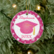 Personalised School Class ornament for Christmas or as a keepsake gift has place for you to add a custom name and graduation class date. Pink snowflake background and pink grad hat for high school and college female graduates. One sided ceramic ornament that makes a lovely Christmas gift, stocking stuffer, graduation present, car hanger, gift tie-on or memory gift.