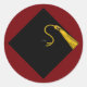 Creative graduation gift stickers, party favour labels or envelope seals featuring classic black and gold grad cap on maroon background.