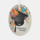A beautiful customizable graduation ornament. A graduation cap surrounded by beautiful orange, blue, and pink flowers. Pretty black swirls match the black of the graduation cap. A space to enter in the graduate name and graduation date on the cap. The ornament says 'Congratulations Graduate' in a fun font. This ornament would be a lovely keepsake for any graduate and a nice commemorative gift for the graduate in your life. Some parts of this design were created using generative content.