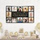 Add an elegant personalised touch to college or high school graduation party decorations with a custom 12 photo collage banner. The pictures and all wording on this template are simple to personalise, and colours are easy to change with the Zazzle design tool. The black and gold design features a faux foil mortar board cap, trendy handwritten script calligraphy, chic modern minimalist typography, and twelve favourite photos of your choice, such as senior pictures or images from the commencement ceremony. Please note that gold is printed colour, not metallic foil. This large graduation party sign can be hung on a wall to welcome guests to the celebration or used as a fun and stylish photo booth backdrop. Congratulations to the graduate!
