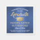 Add an elegant personalised touch to college or high school graduation party decorations with these custom blue, gold and white paper napkins. All text is simple to customise. Design features a blue faux brushed stainless steel background, faux foil mortar board cap, stylish modern typography, and handwritten style script calligraphy. Please note that gold is printed colour, not metallic foil. Congratulations to the graduate!