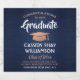 Add a personalised touch to college or high school graduation party decorations with these elegant navy blue, copper and white beer bottle labels. Design features a dark blue faux brushed stainless steel background, stylish modern typography, handwritten style script calligraphy, and a customisable message reading "Congratulations to our Graduate". Text at the bottom includes class year, school name, and optional lines for degree, beverage type, or other info. All text is simple to customise. Please note that copper is printed colour, not metallic foil. These labels make a stylish graduation party drink idea and an elegant addition to the graduate's special day celebration. Cheers!