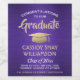Add a personalised touch to college or high school graduation party decorations with these elegant purple, white and gold wine bottle labels. Design features a faux brushed stainless steel background, stylish modern typography, handwritten style script calligraphy, and a customisable message reading "Congratulations to our Graduate". Text at the bottom includes class year, school name, and optional lines for degree, beverage type, or other info. All text is simple to customise. Please note that gold is printed colour, not metallic foil. These labels make a stylish graduation party drink idea and an elegant addition to the graduate's special day celebration. Cheers!