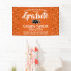Add a personalised touch to college or high school graduation party decorations with this custom orange, white and black banner. All text is simple to customise to include name, class year, school, degree, honours, inspirational quote, or other text of your choice. Design features an orange background, black mortar board cap, festive confetti dots, stylish modern typography, and handwritten style script calligraphy. This party sign is an elegant way to celebrate the special day. Congratulations to the graduate!