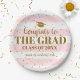Celebrate your Graduate with these festive paper plates featuring a fun, trendy pink and white striped background and your custom text, accented by faux gold glittery confetti and a gold Grad cap. Perfect for a high school or college graduation party.