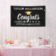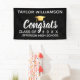Modern yet simple graduation banner featuring a faux gold graduation cap, your student's name, school, class of year and the word Congrats in a fun script font. Easily change the background colour to match your school colour. Perfect for graduation parties and celebrating your graduate's big day!