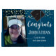 Fun faux gold foil confetti with mortarboard graphic and all adjustable text. Two photo option is easy to change. Printed on both front and back of the bag. Blue