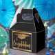 Stylish and elegant black and faux gold graduation party favour box. Faux gold border frames a faux gold graduation cap and the text congratulations. Sure to be a hit with all graduates!