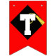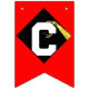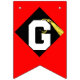 Graduation party congrats decoration featuring black and gold grad cap on red background.