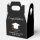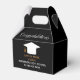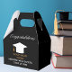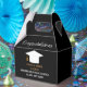 This modern custom senior graduation party favour box features the high school graduate name elegant gold on the chic black background for the class of 2025. Customise with your high school, college, or university name and year for a great graduation keepsake for seniors.