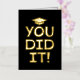Celebrate the graduate with this fun bold graduation congratulations card! Featuring "you did it!" in gold type on a black background along with a graduation cap, this grad card also has a matching "congrats, grad" on the inside. This original design - great for a high school graduate or a college graduate - is also available in other colour combinations.