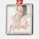 This keepsake graduation ornament features the graduate's personalised photo, name, and class year, along with the word "Graduate" in elegant faux rose gold foil calligraphy. An ideal gift for a high school or college graduate or her parents.