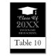 Graduation dinner party custom table number cards. Custom party seating signs. Classy table decor for graduate celebrations. Help people find their table and seats quickly. Black and white design with tassel logo. Chic table decor and decorations. Add your own personalised high school name and class year.