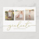 This design features a simple two photo graduation invitation template, with QR code and Facebook URL for website and online event page. a three 3 picture elegant graduate announcement layout, with modern simple calligraphy, trendy script typography, great for high school or college vertical, a graduation grad party invite, a senior student minimal minimalist design, great congratulations celebration, with gold text and white background, and a fancy script font